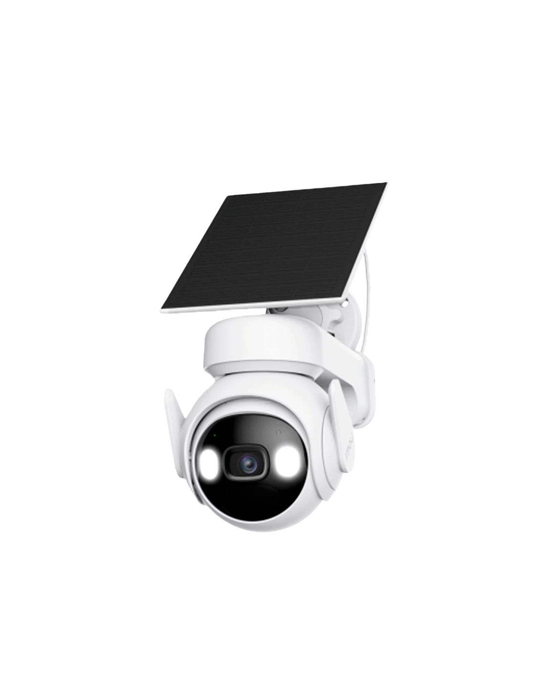 Diseñada para operar sin cables, combina conectividad Wi-Fi 2.4 GHz, batería recargable de 5000 mAh y panel solar incluido, lo que garantiza energía continua y cero mantenimiento.